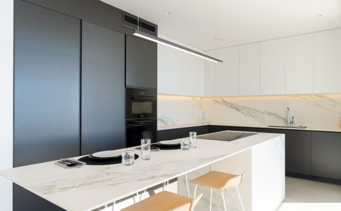 Ein Wohnhaus mit vielen Bereichen, um das Familienleben und die Unterhaltung am Meer zu geniessen. Es bietet einen Tagesbereich aus mehreren verbundenen Räumen für verschiedene Momente des Tages, Wohnzimmer und Esszimmer, Küche mit zentraler Insel und Frühstückszone, grosse Sommerveranda mit Grill, 4 Aufenthaltsbereiche, um sich zu unterhalten, Familienanlässe zu feiern oder sich einfach zu entspannen und aufs Meer zu schauen.