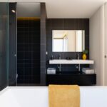 Das Design des komfortablen Hauptschlafzimmers sorgt für Entspannung: Der private Bereich besteht aus einem grossen Bad en Suite mit Badewanne, Dusche und Meerblick, einer grossen Ankleide und einem Schlafzimmer mit Zugang zu einer privaten Terrasse.