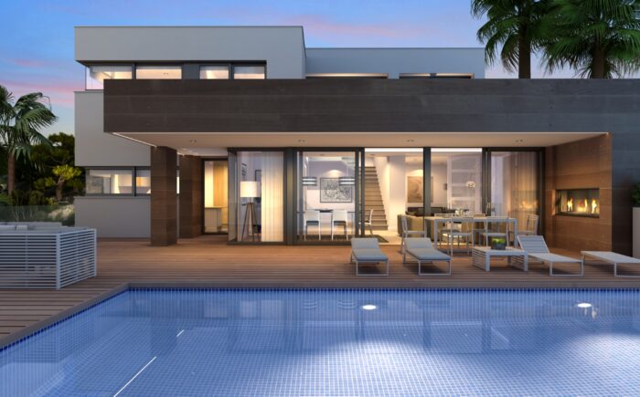 Diese Bilder dienen der Orientierung. Sie entsprechen dem ausgewählten Modell, das an eine bestimmte Parzelle angepasst wurde. Die Realisierung auf einer anderen Parzelle bringt infolge der Anpassung an das Gelände Modifizierungen bei der Fassade und bei den Bauteilen mit sich. Dieses Projekt unterliegt der Anpassung an die Änderungen, die sich aus den im Königlichen Erlass 732/2019 , die vor Kurzem in Kraft getretene, vorgesehenen Änderungen der spanischen Bauvorschriften (Código Técnico de la Edificación) ergeben und die technische und/oder preisliche Änderungen nach sich ziehen können.