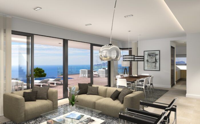 Dieses moderne Design-Haus liegt in einer der exklusivsten Gegenden, der Urbanisation Cumbre del Sol, im luxuriösen Wohngebiet Jazmines, einem Komplex der grosse Luxusvillen beherbergt sowie sich über atemberaubende Meersicht und fantastische Aussichten über die Skyline von Calpe und Benidorm im Hintergrund erfreut. Nur 10 Fahrminuten von der Cala del Moraig und den Orten Jávea und Moraira entfernt.