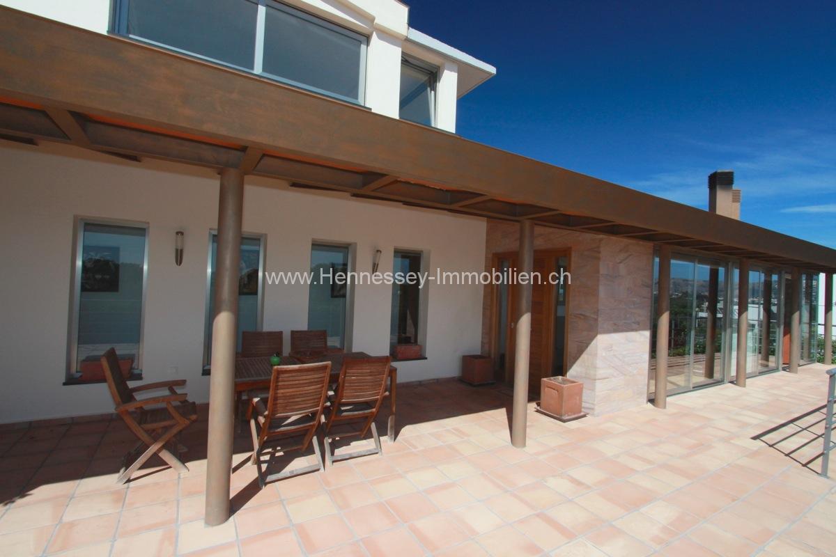 Dieses wunderschöne Haus wurde 2004 erbaut und bietet wunderschöne, avantgardistische architektonische Linien sowei eine warme Atmosphäre mit einer gelungenen Kombination aus Beton, Eisen, Aluminium und Stein. Mit einer Wohnfläche von 170 m2 bietet die Villa einen herrlichen blick auf den Montgo und das Meer am Horizont.