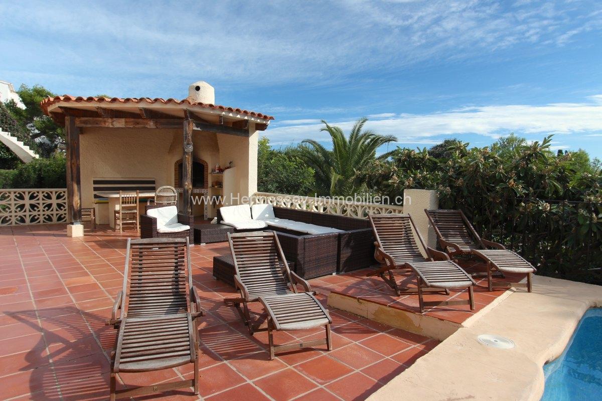 Renoviertes Haus mit schöner Meeraussicht. Das Grundstück hat eine Grösse von 710 m2 und das Wohnhaus bietet eine Wohnfläche von 200 m2, welche über zwei Etagen verteilt sind.