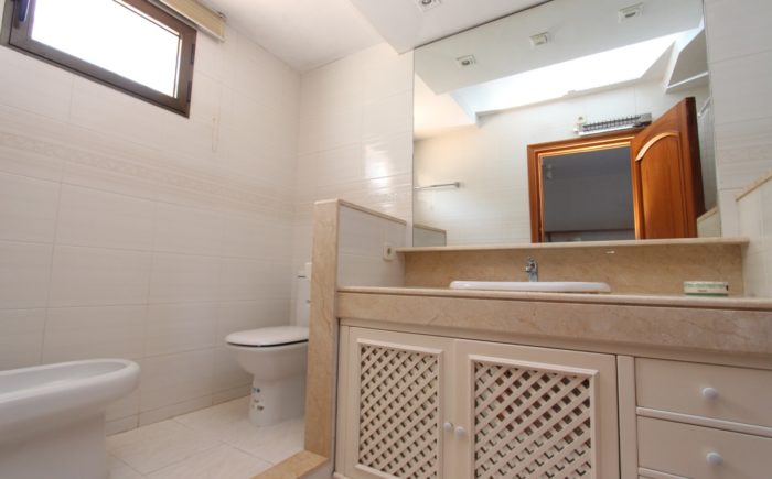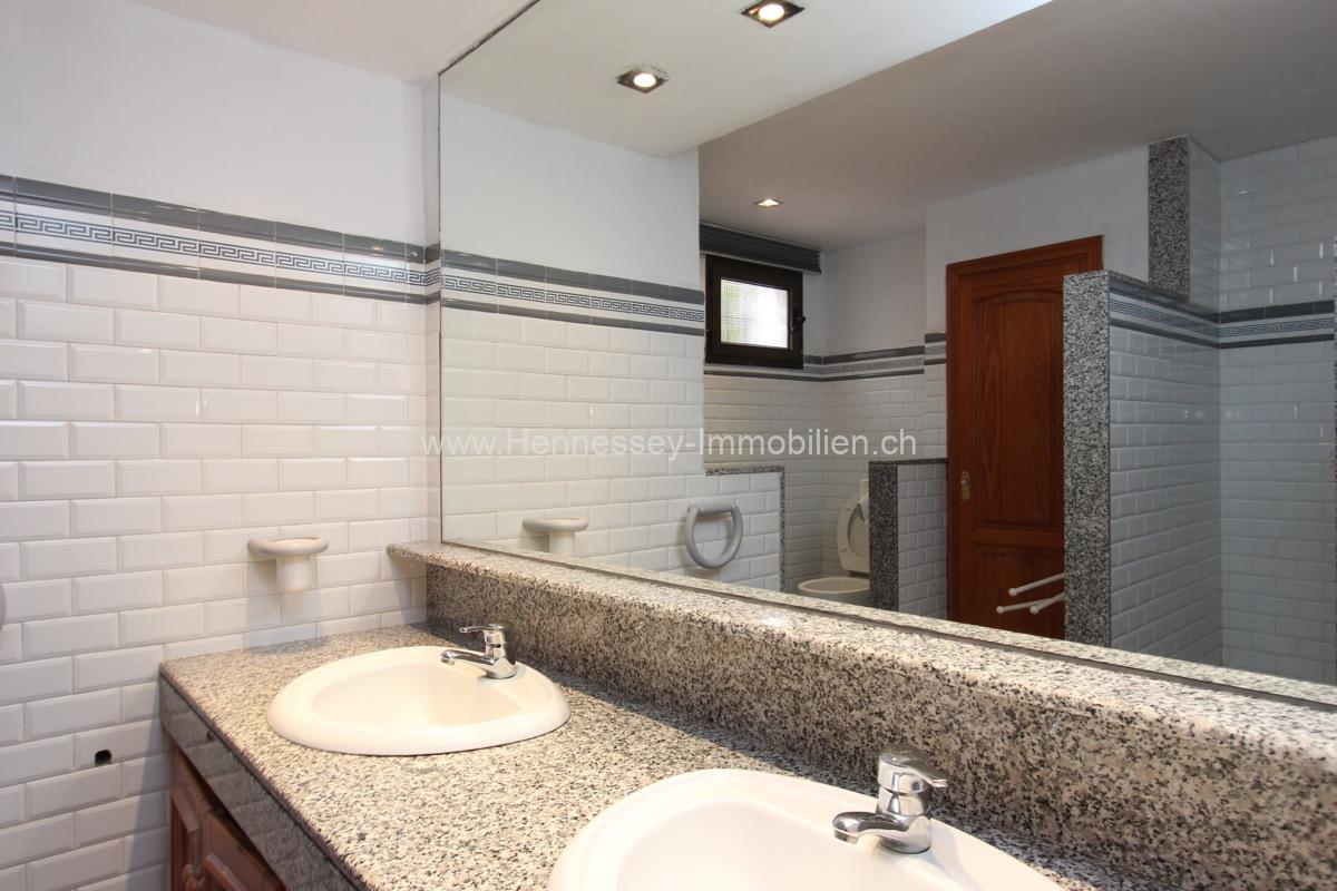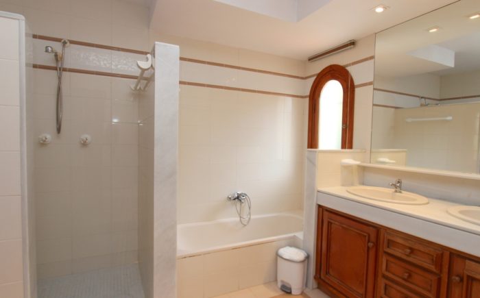 Das Erdgeschoss verfügt über eine grosse Terrasse mit einem sehr schönen Meerblick, ein helles und geräumiges Wohnzimmer mit Kamin, Esszimmer, Küche, Speisekammer, grosses Hauptschlafzimmer mit Bad und WC.